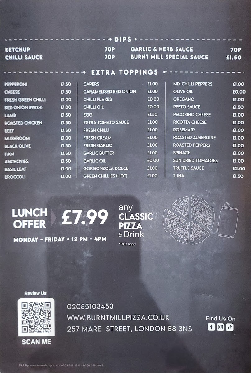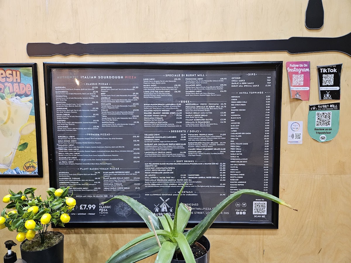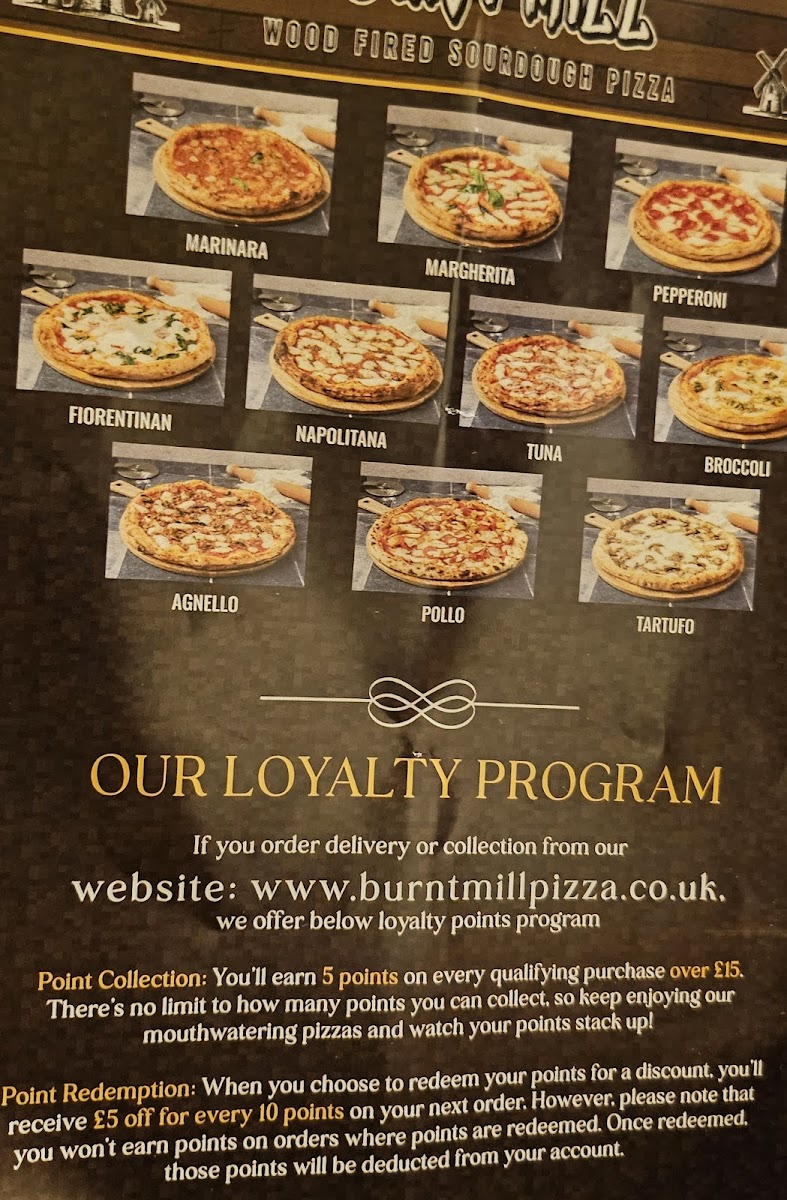 Burnt Mill - Wood Fired Pizza Menu